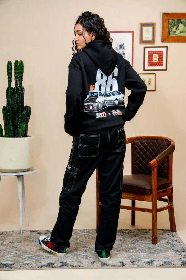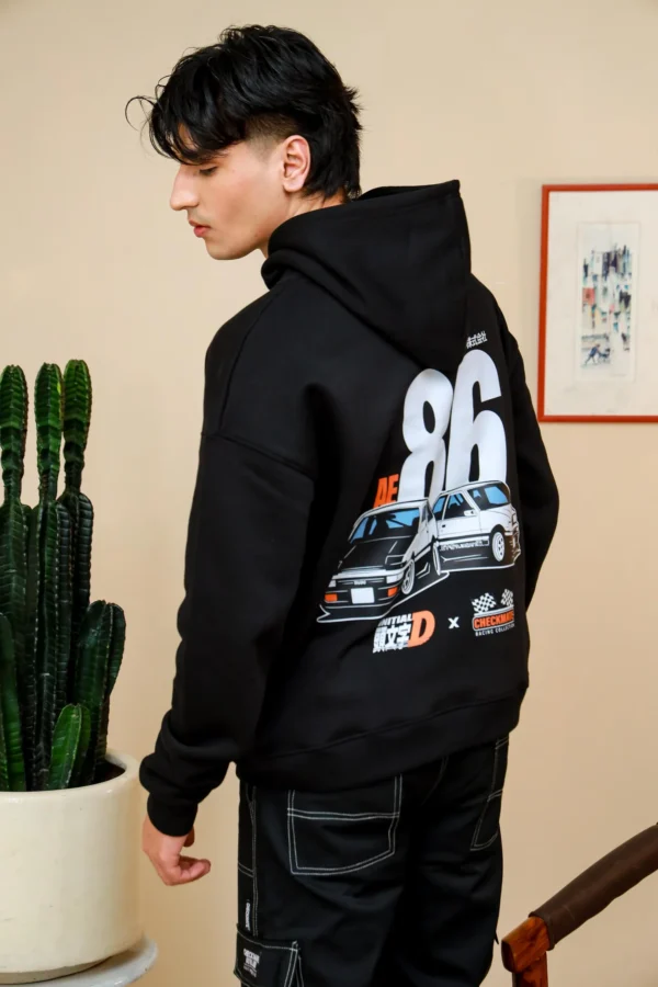 Initial D Oversized Hoodie will take your streetwear game to the next level with their inspiring AE86 from the classic anime series. Showcase your passion with style because this hoodie is designed by JDM and anime lovers like you. The bold graphic of the iconic AE86 in black and white radiates the essence of the Japanese drift scene. It is an oversized fit to give a trendy yet casual look to any outfit, made for both men and women. Whether you relax at home or go for a drive, its high-quality, soft fabric offers all-day comfort and warmth.