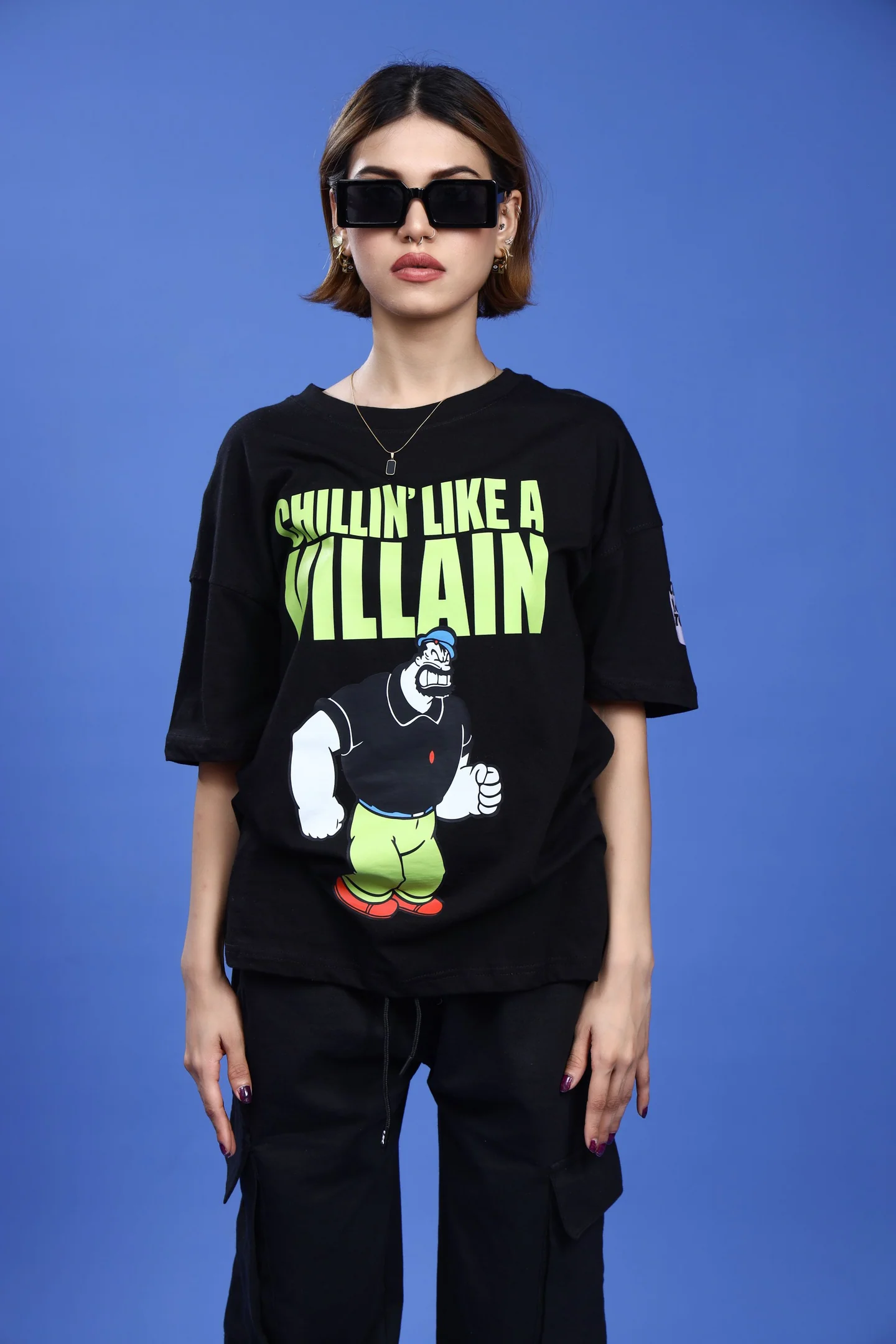 Step up your street style game with this VILLAIN Oversized T-Shirt! It’s comfy and cool – the perfect combination for a villainous look. Be the envy of the block with this oversized evil ensemble!
